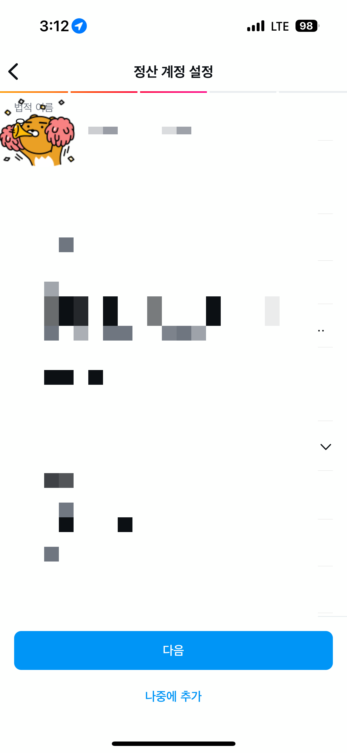 4. 비즈니스 정보 선택에서 나의 이름을 선택하고, 기본 정보 입력란에 입력합니다.