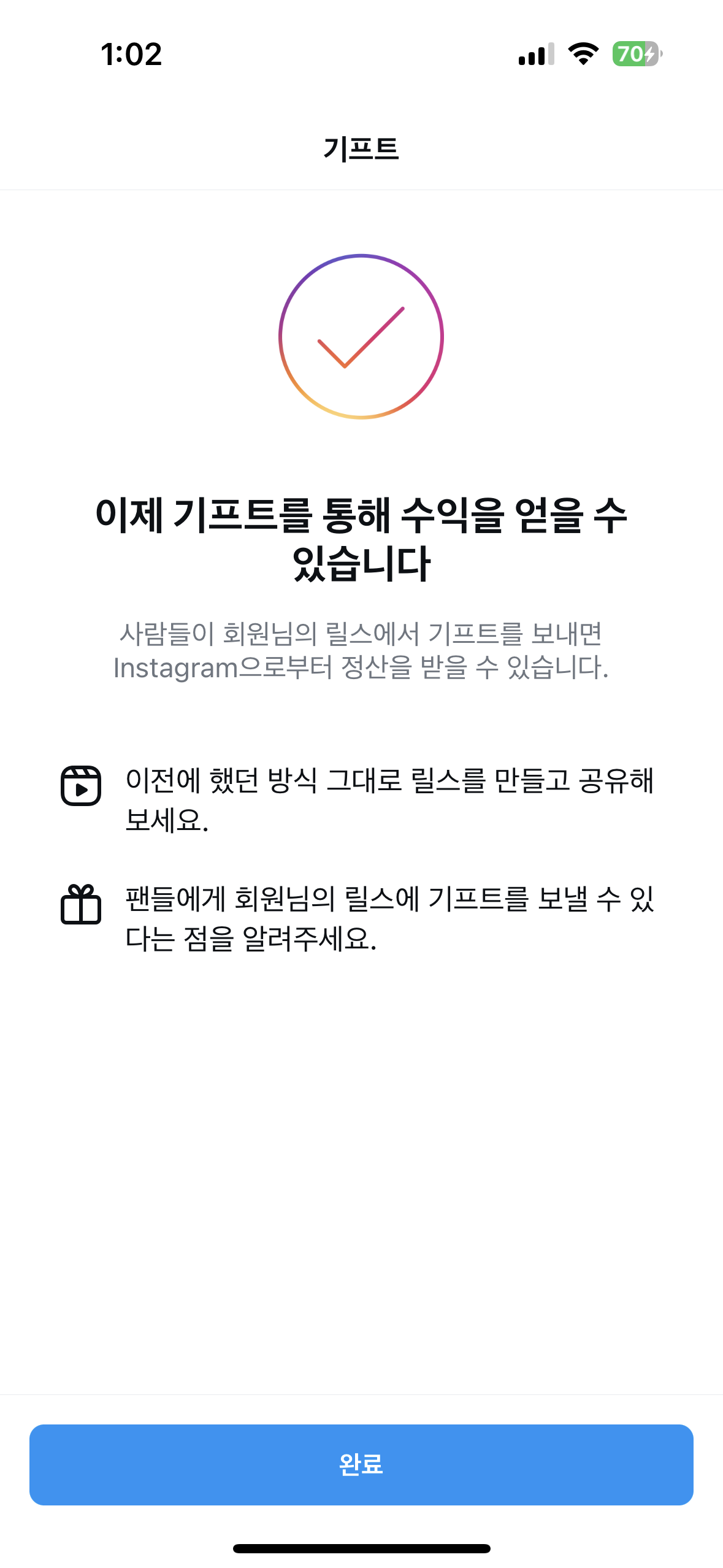 여기까지 인스타그램 수익화 조건과 기프트 신청하는 방법 순서대로 확인해보았어요! 릴스 수익으로 인스타 수익화에 도전해 보는 것도 좋겠죠?